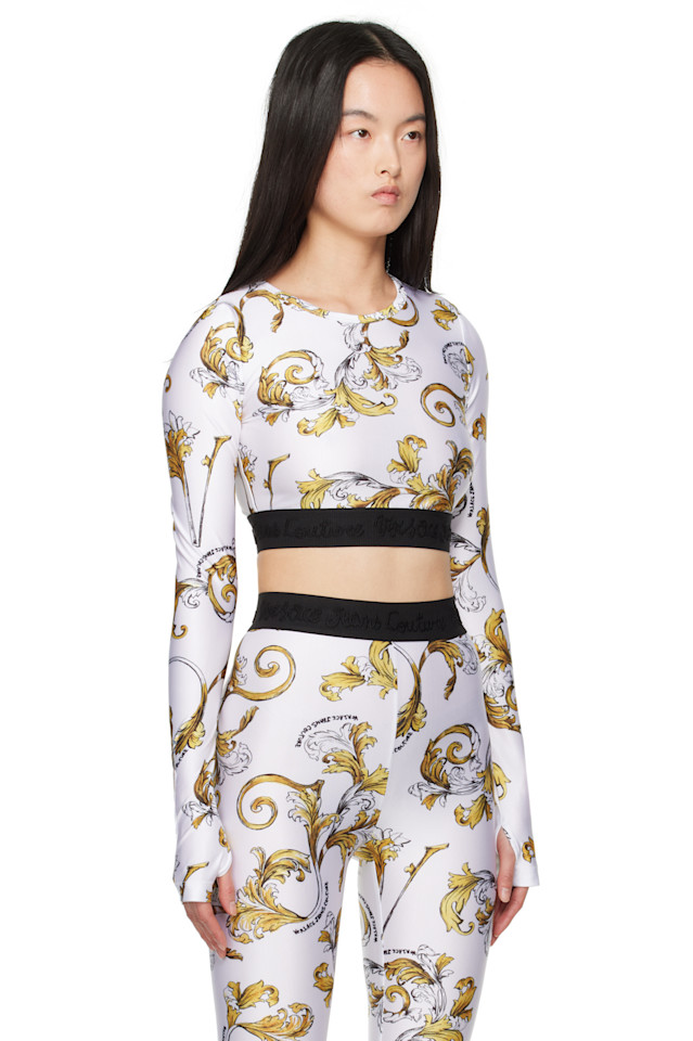 Футболка из эластичного нейлонового джерси. Графический рисунок и логотипы напечатаны по всей длине.
