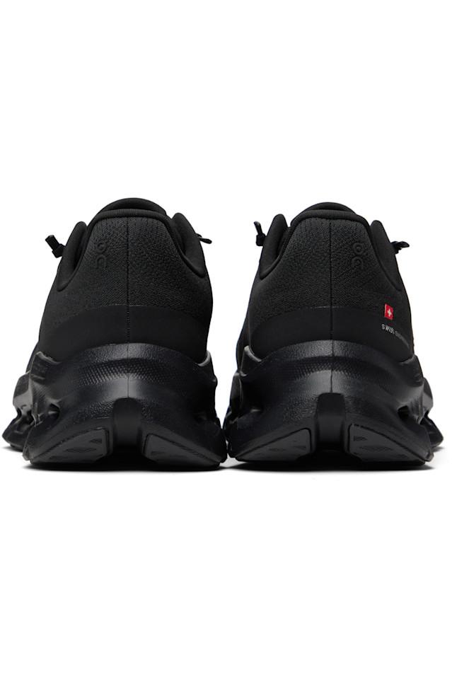 Низкие, лёгкие, окрашенные в массе, кроссовки из переработанной сетки чёрного цвета.