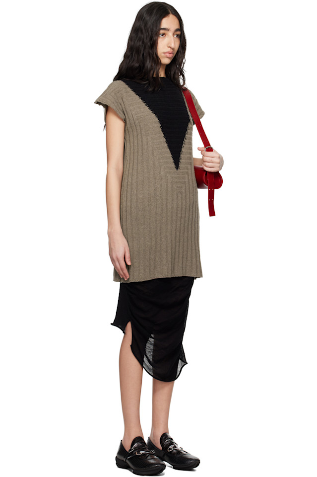 Мини-платье из смеси кашемира и шерсти, связанное в рубчик.
