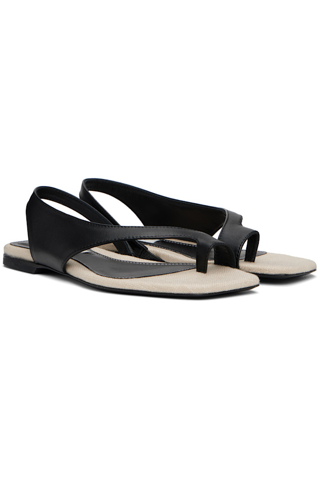 Сандалии из зернистой овчины, сертифицированные LWG, черного цвета.
