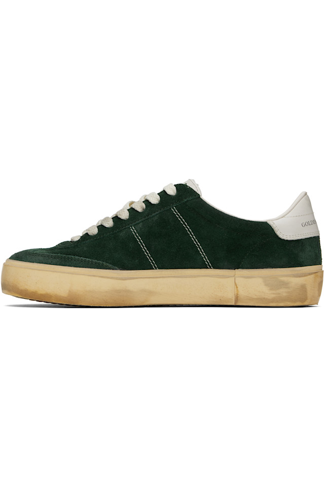 Низкие замшевые кеды ручной работы зеленого цвета.