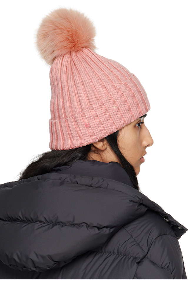 Шапка бини из натуральной шерсти, вязка резинкой 5 калибра, розового цвета.