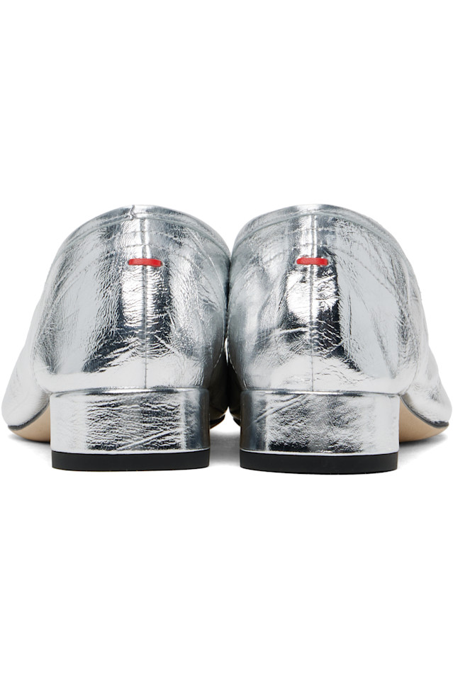 Балетки из ламинированной телячьей кожи с трещинками серебристого тона.