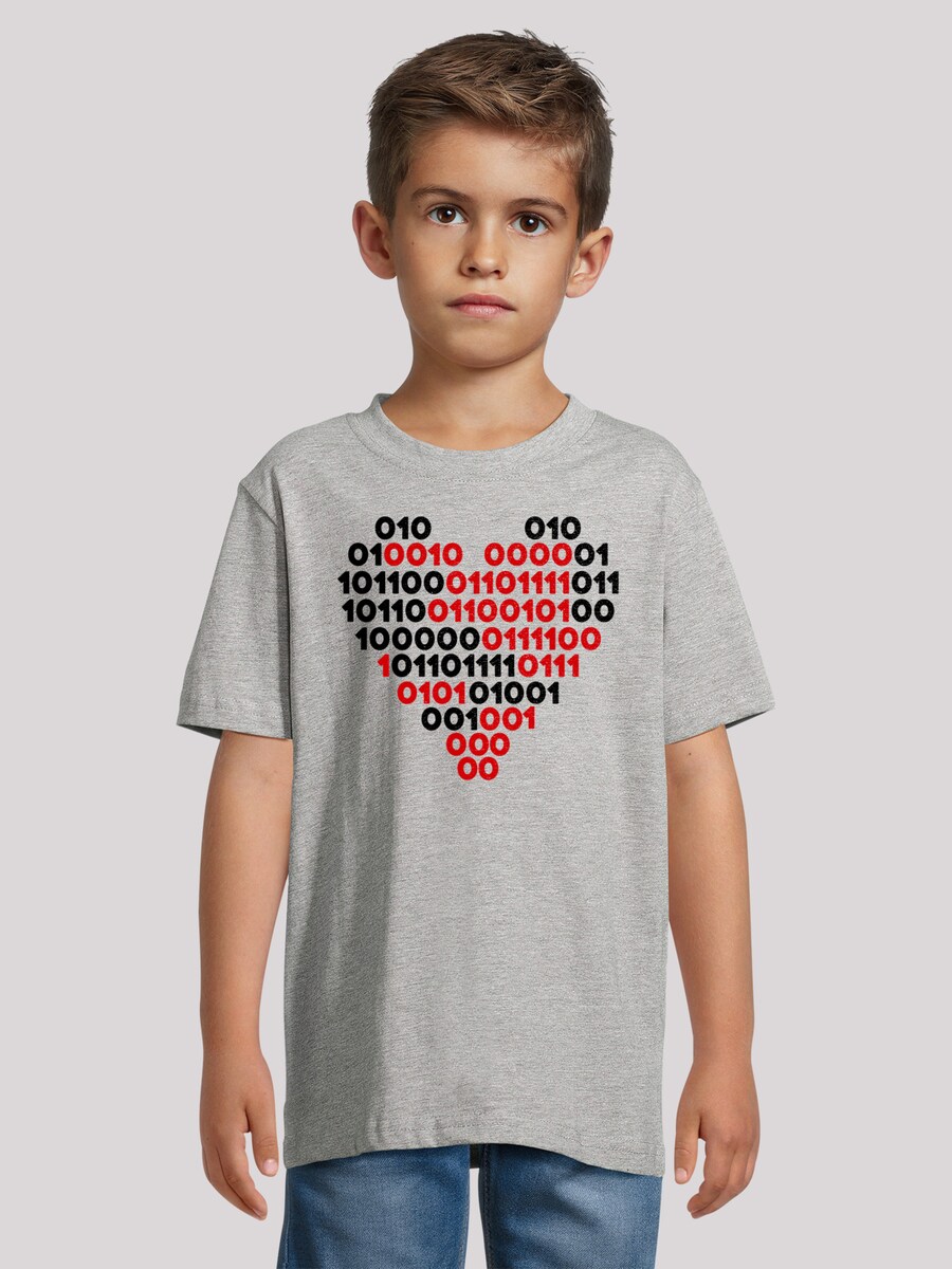 Рубашка F4NT4STIC I love you 01001001 Binary Code Herz Valentinstag, пятнистый серый