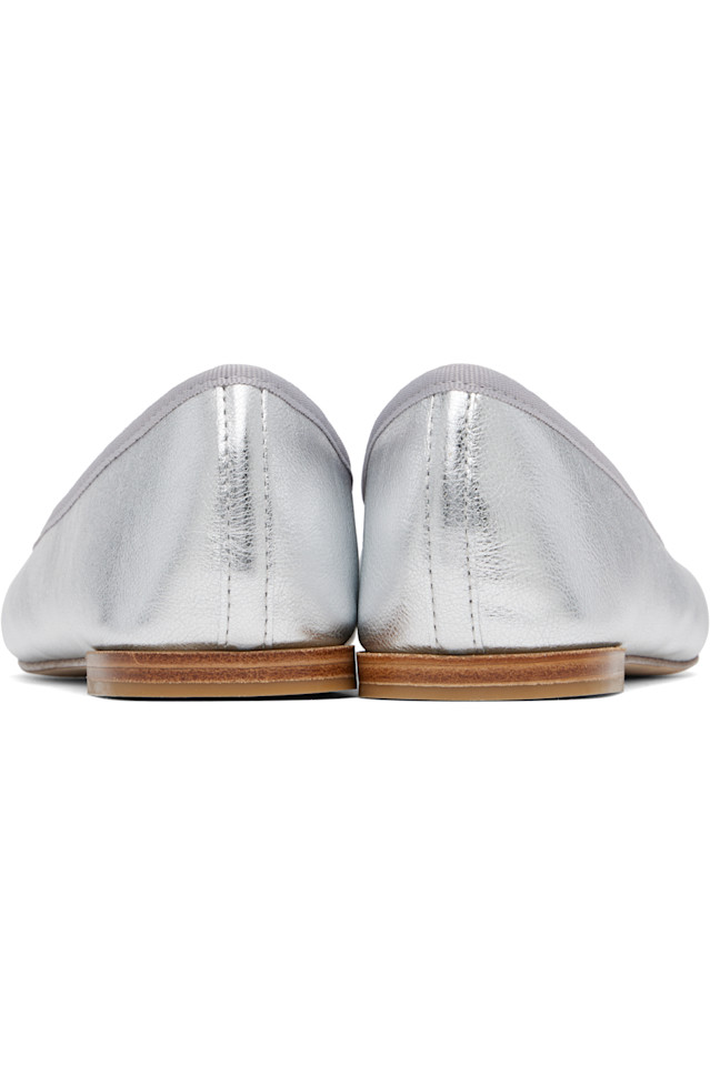 Балетки из телячьей кожи наппа серебристого оттенка.