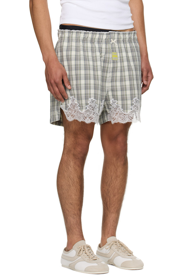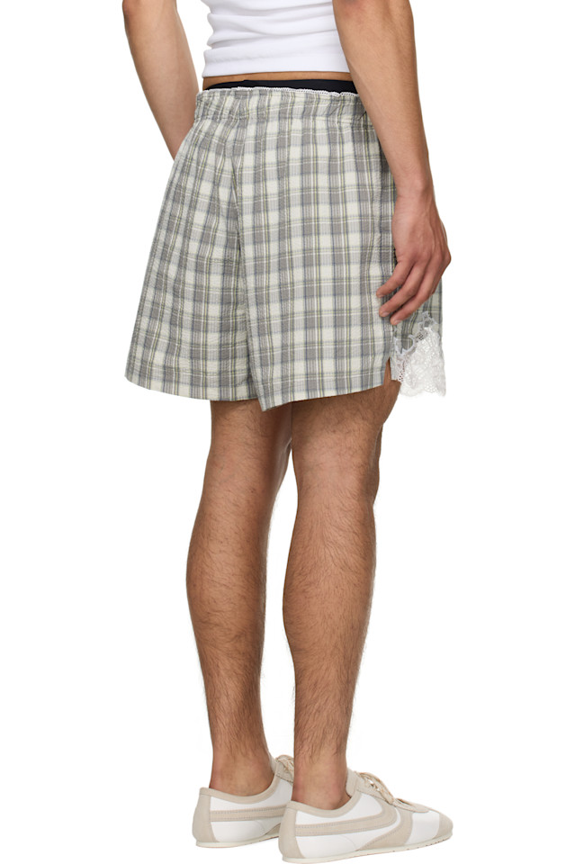 Шорты из хлопковой ткани сирсакер. Клетчатый узор по всему изделию.