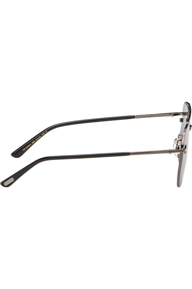 Солнцезащитные очки в стиле «авиаторы» с металлической оправой цвета оружейной стали.