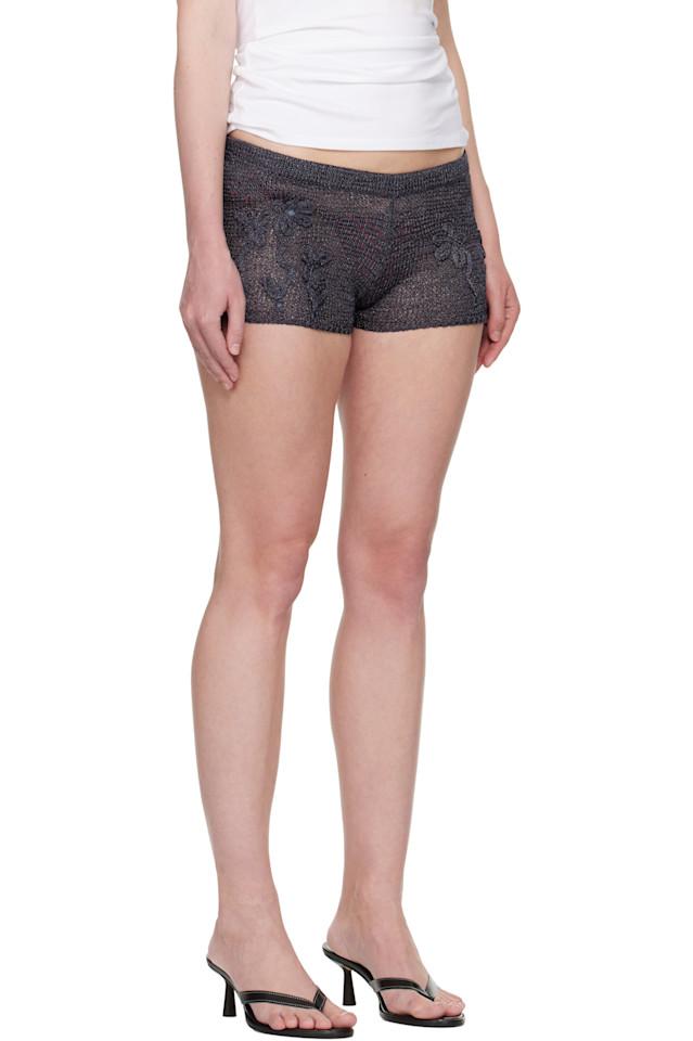 Полупрозрачные шорты из вискозной смеси, сертифицированные FSC. Цветочные аппликации по всему изделию.