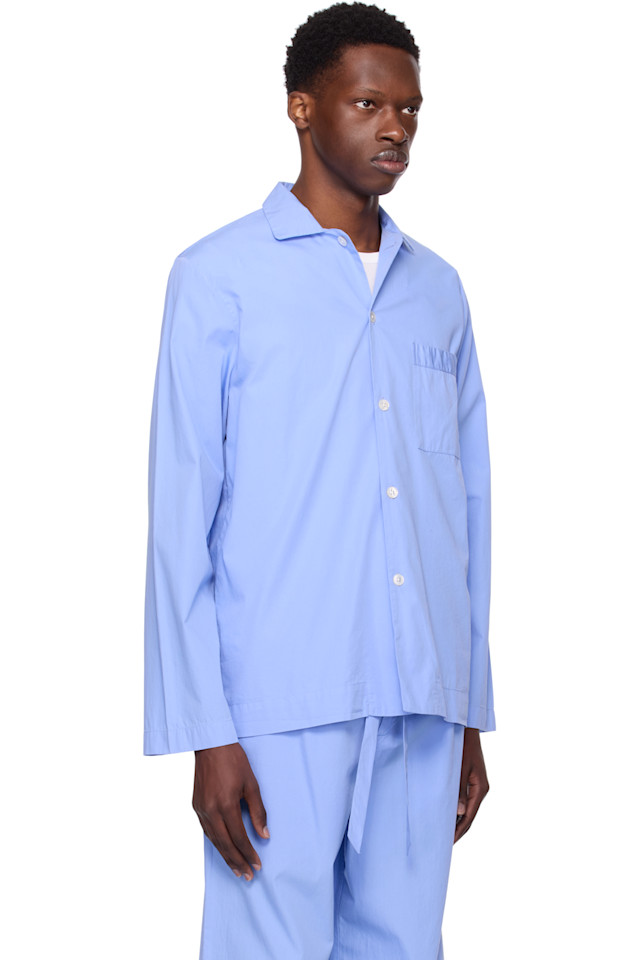 Поплиновая пижамная рубашка с длинным рукавом Tekla, синий