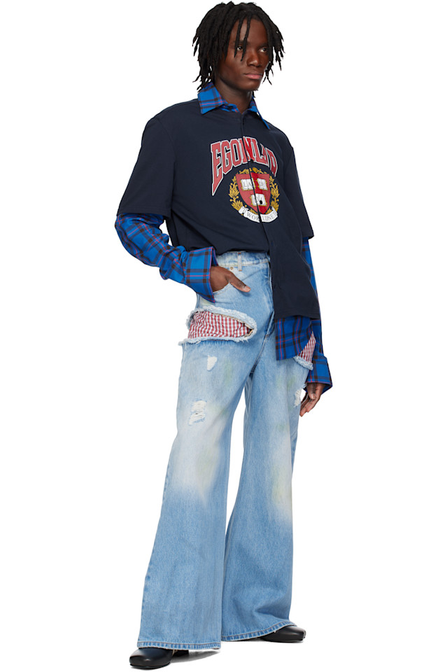 эксклюзивные синие ажурные джинсы Ssense Egonlab, синий