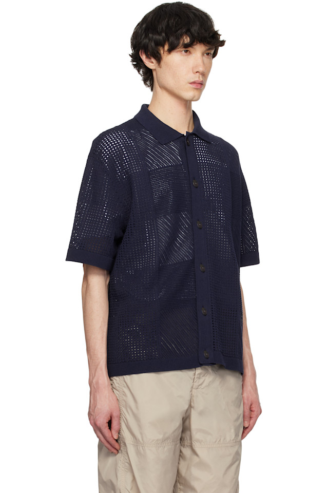 Рубашка из хлопка ажурной вязки. Жаккардовый клетчатый узор по всему изделию.