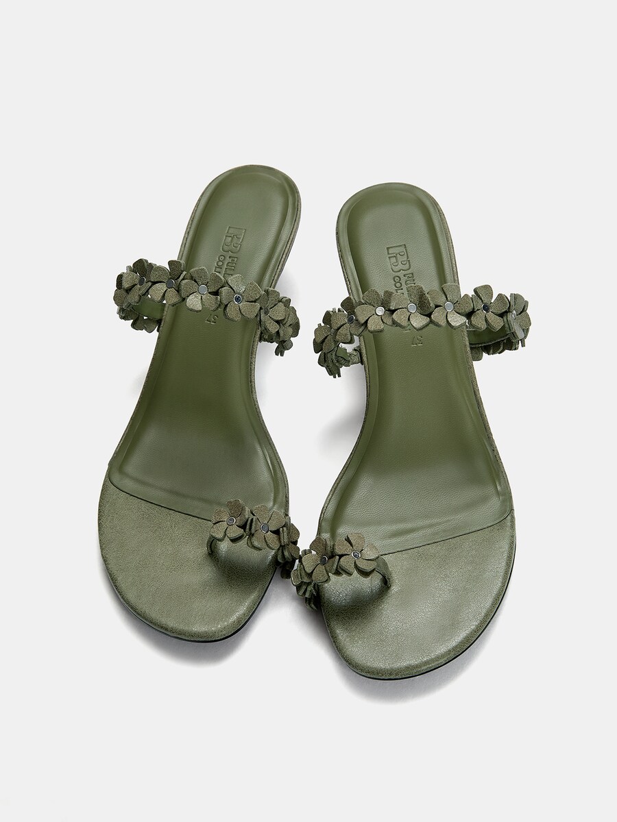 Сандалии с Т-образной перемычкой Pull&Bear, оливковый