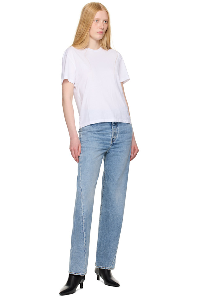 Джинсы из неэластичного органического хлопкового денима. Потертости и выцветание по всей длине.