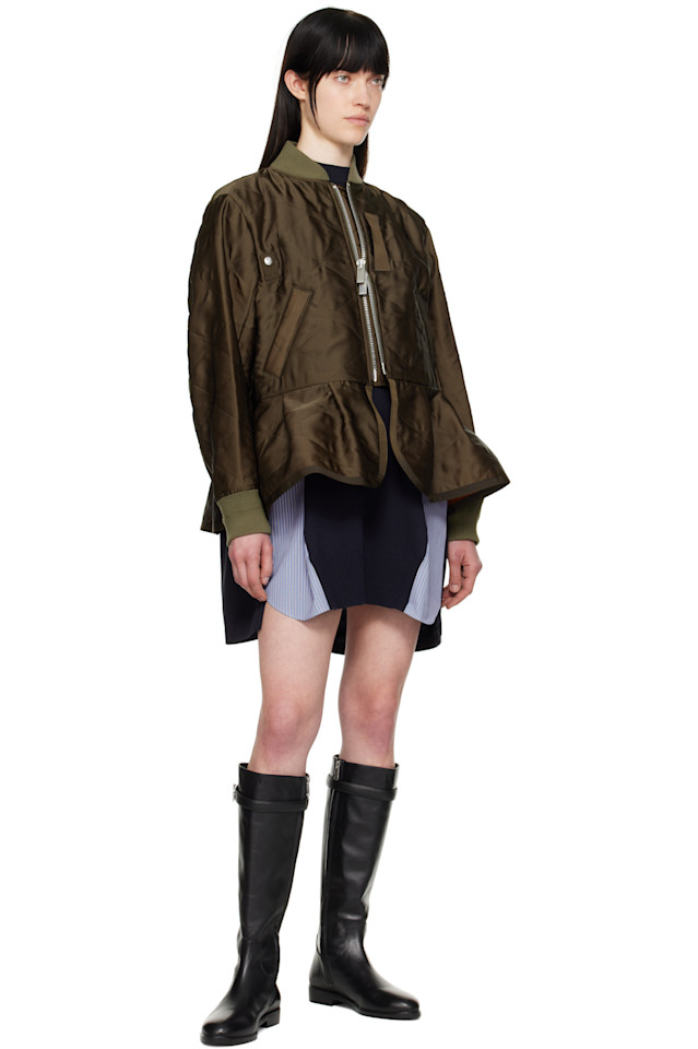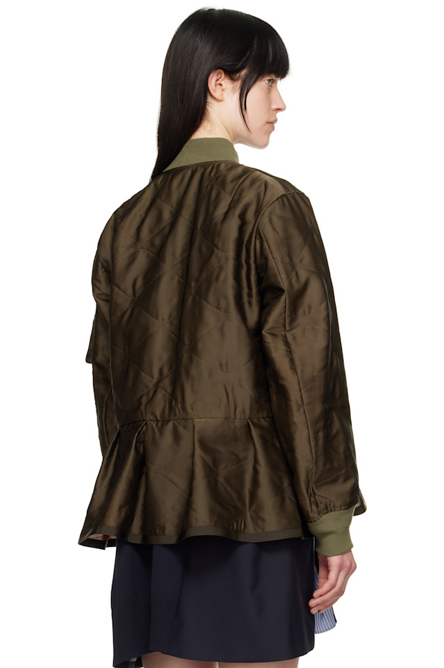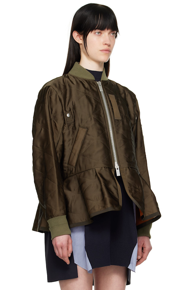 Стеганая атласная куртка-бомбер Sacai, хаки