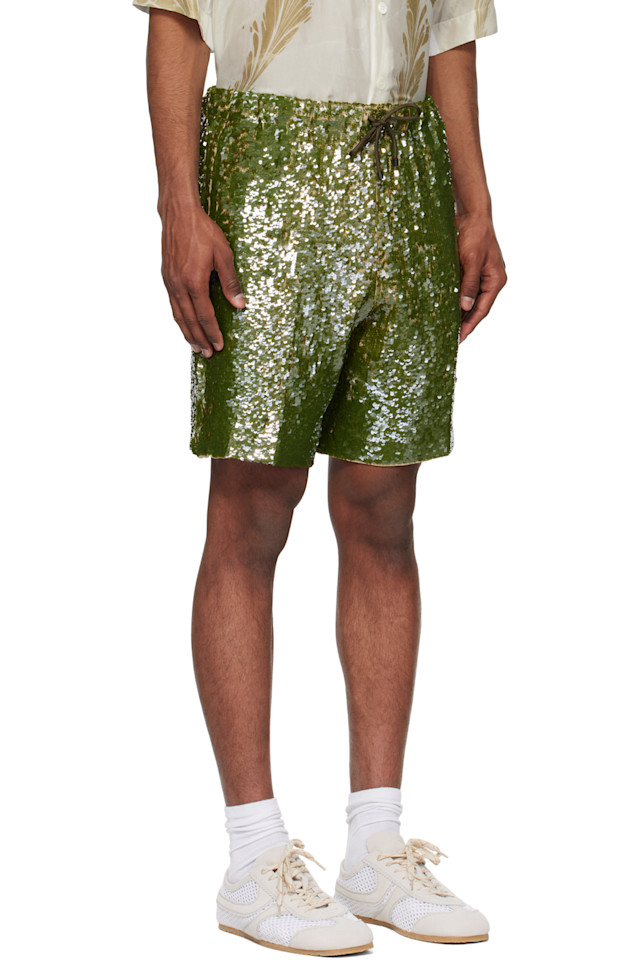 Шорты с пайетками Dries Van Noten, хаки