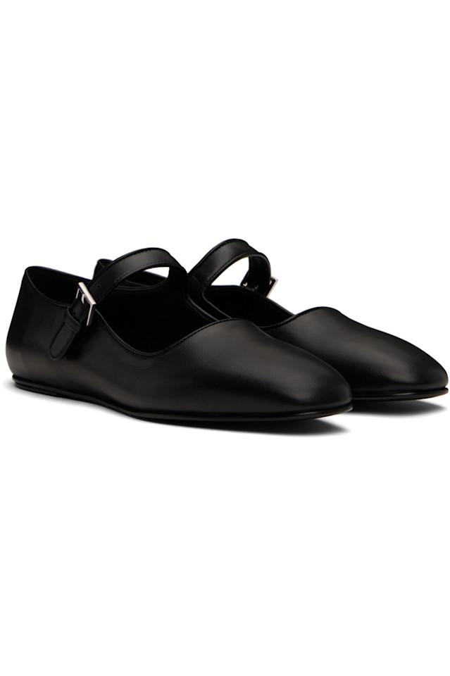 Балетки в стиле Мэри Джейн из полированной козьей кожи наппа, черного цвета.