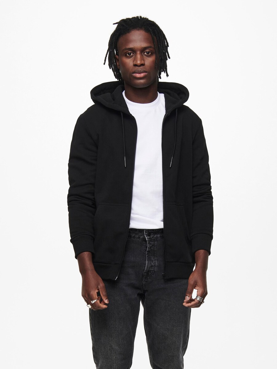 Толстовка с капюшоном на молнии классического кроя Only & Sons Ceres, черный