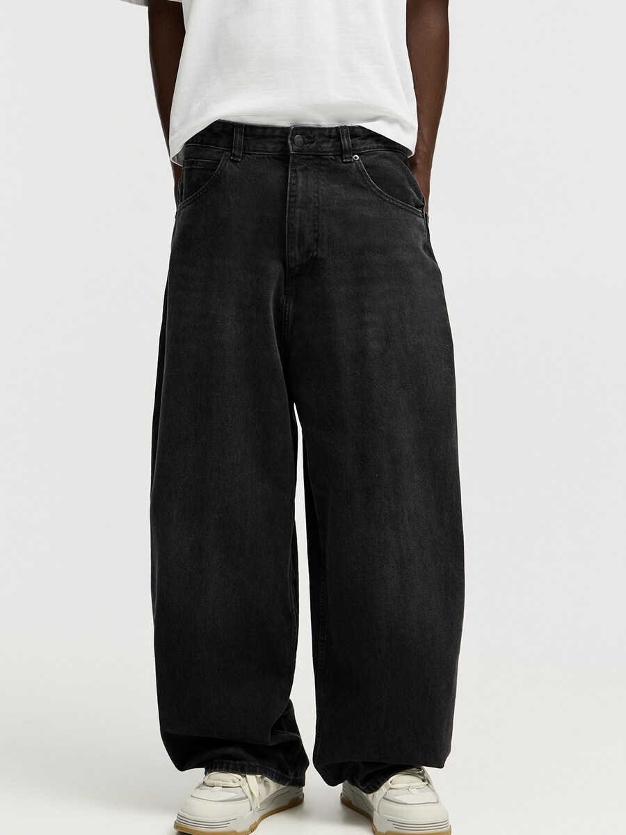 Джинсы с широкими штанинами Pull&Bear, черный деним 3 858₽