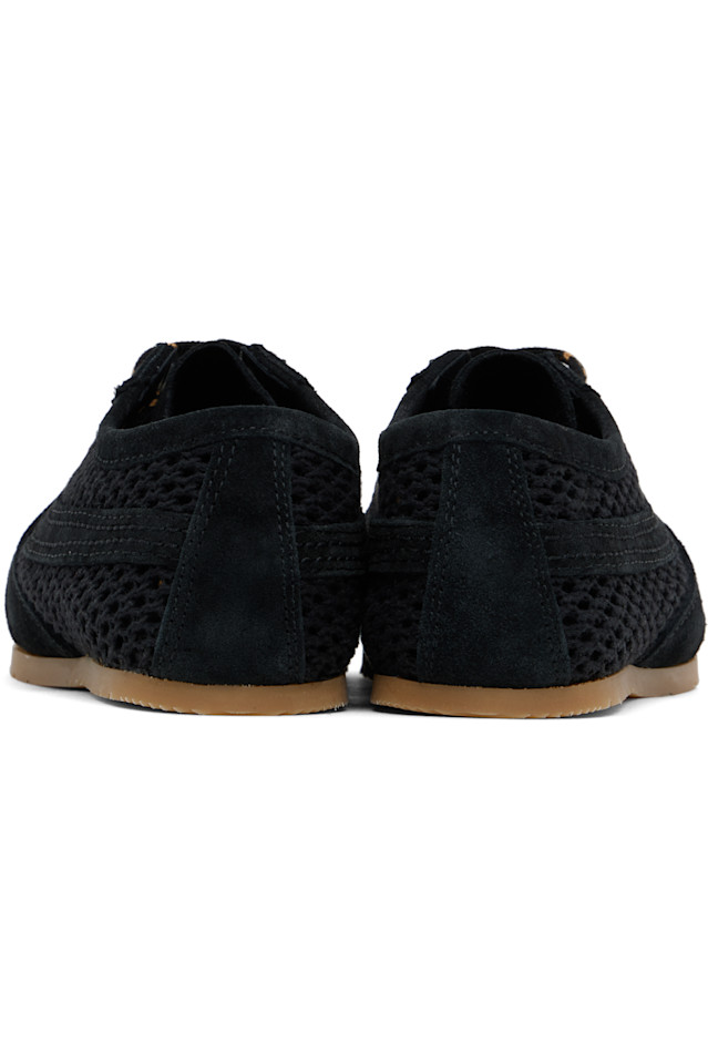Низкие кроссовки из сетки и телячьей замши черного цвета.