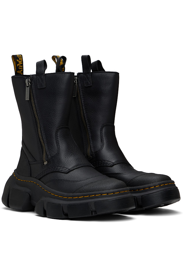 Ботинки до середины голени из зернистой кожи черного цвета.