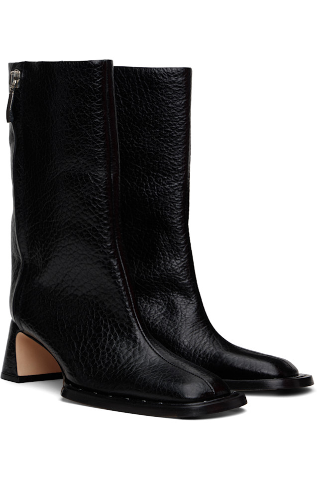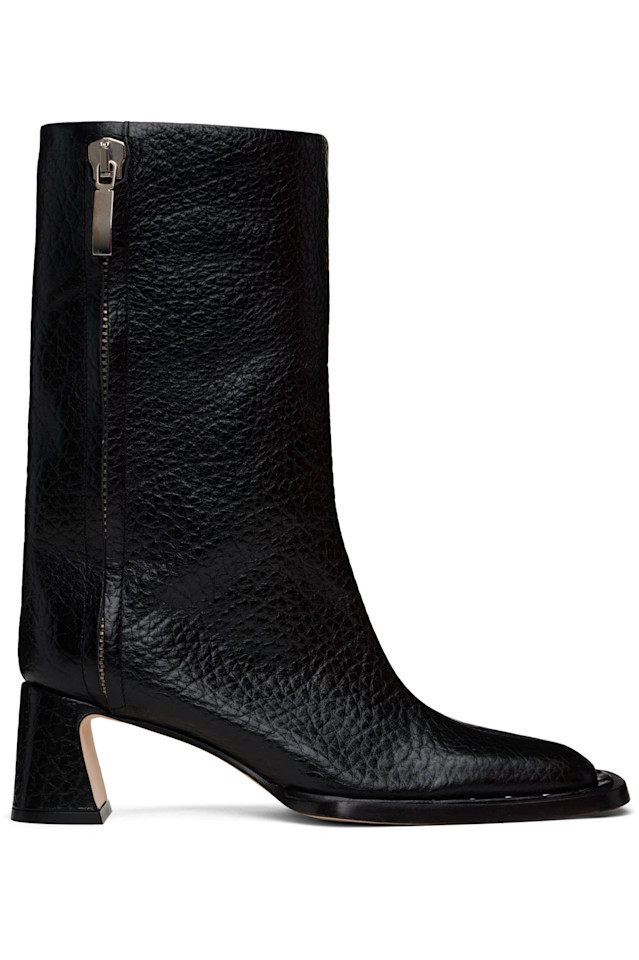 Ботинки до середины голени из зернистой кожи черного цвета.