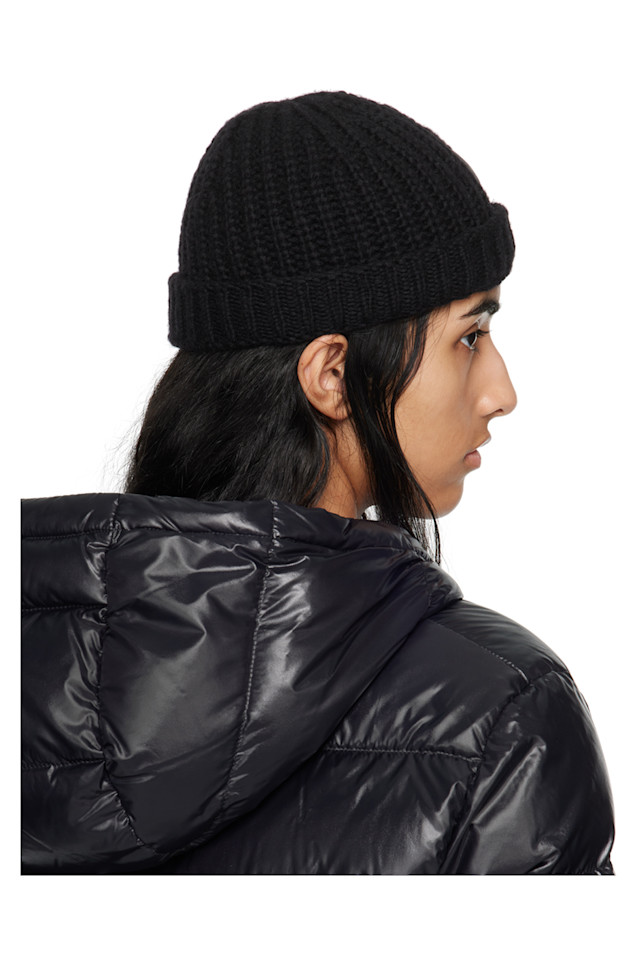 Шапка-бини из сверхтонкой натуральной шерсти с добавлением шерсти, вязка резинкой 5 калибра, черного цвета.