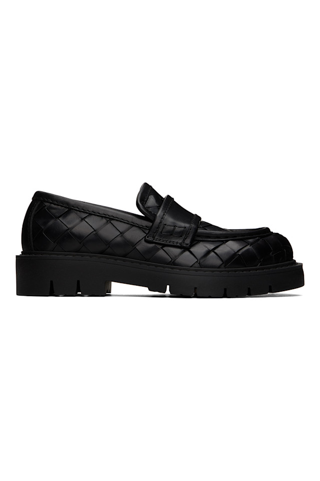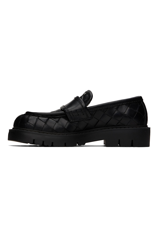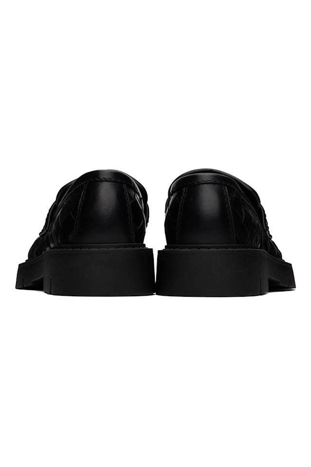 Лоферы из шлифованной телячьей кожи с плетением Intrecciato черного цвета.
