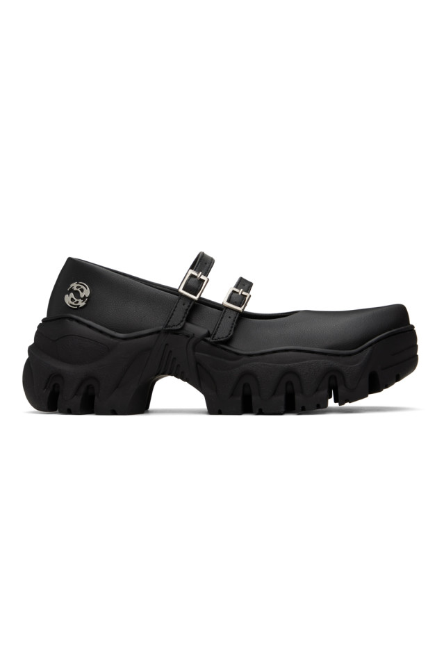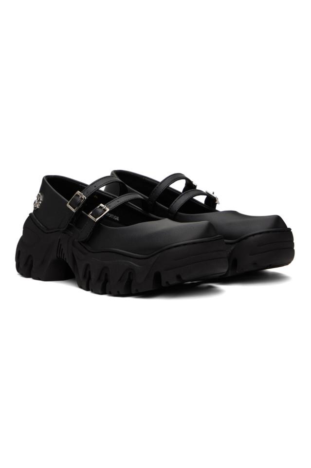 Балетки в стиле Мэри Джейн из зернистой искусственной кожи, изготовленные вручную, черного цвета.