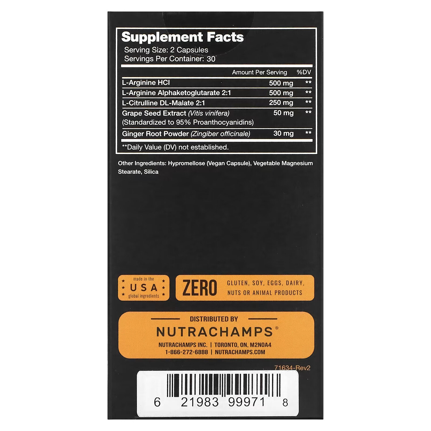 Не содержит глютен, сои, яиц, молочных продуктов, орехи и продукты животного происхождения.