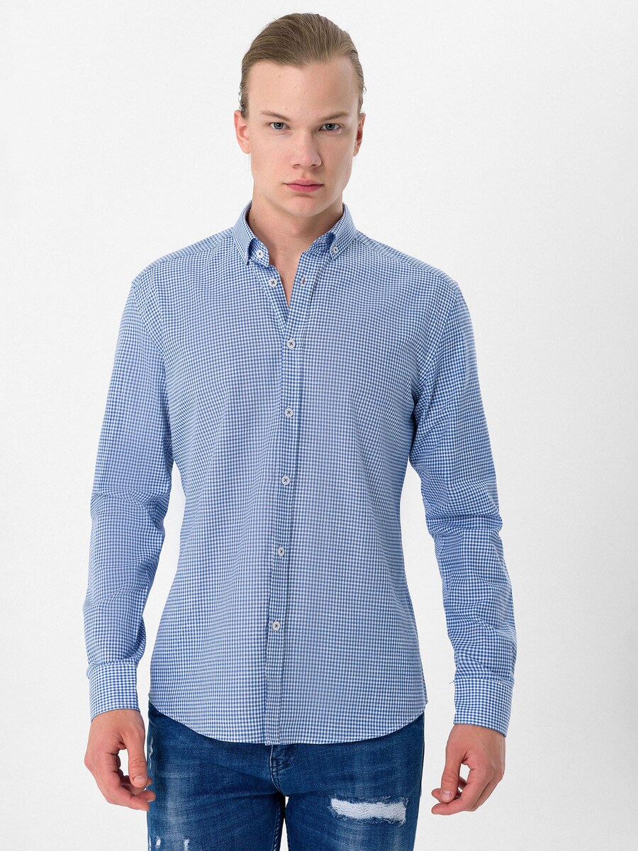 Рубашка на пуговицах классического кроя Moxx Paris, синий