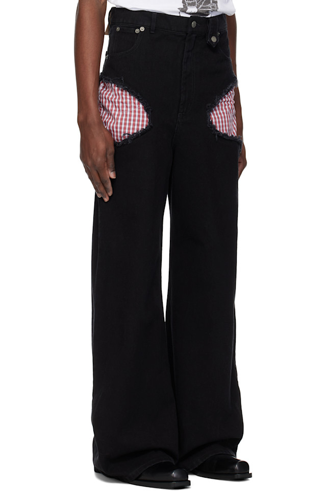 Вырез с необработанными краями и открытой подкладкой по наружным швам.