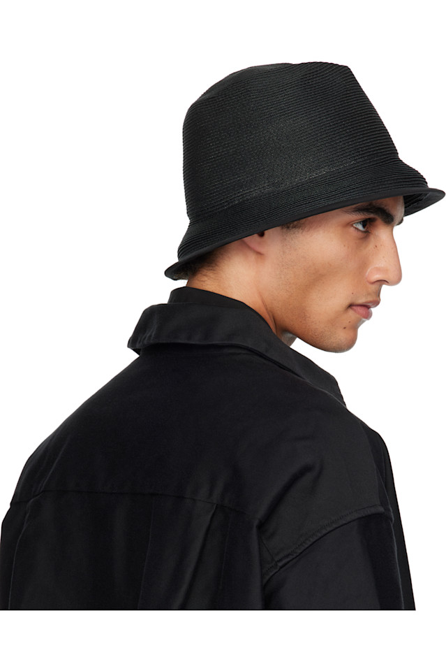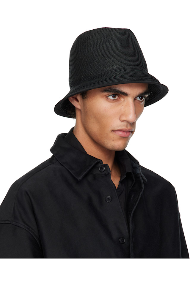 Шляпа из плетёной бумаги чёрного цвета.