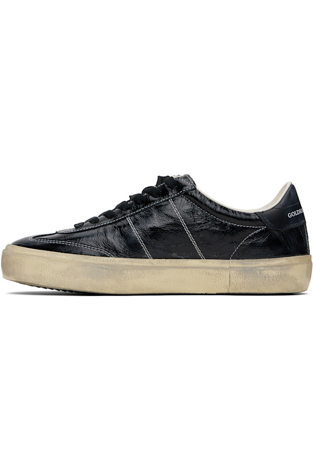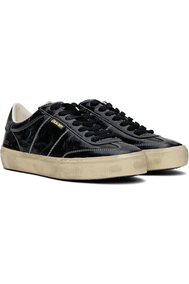 Низкие кроссовки из мятой лакированной кожи, изготовленные вручную, черного цвета.