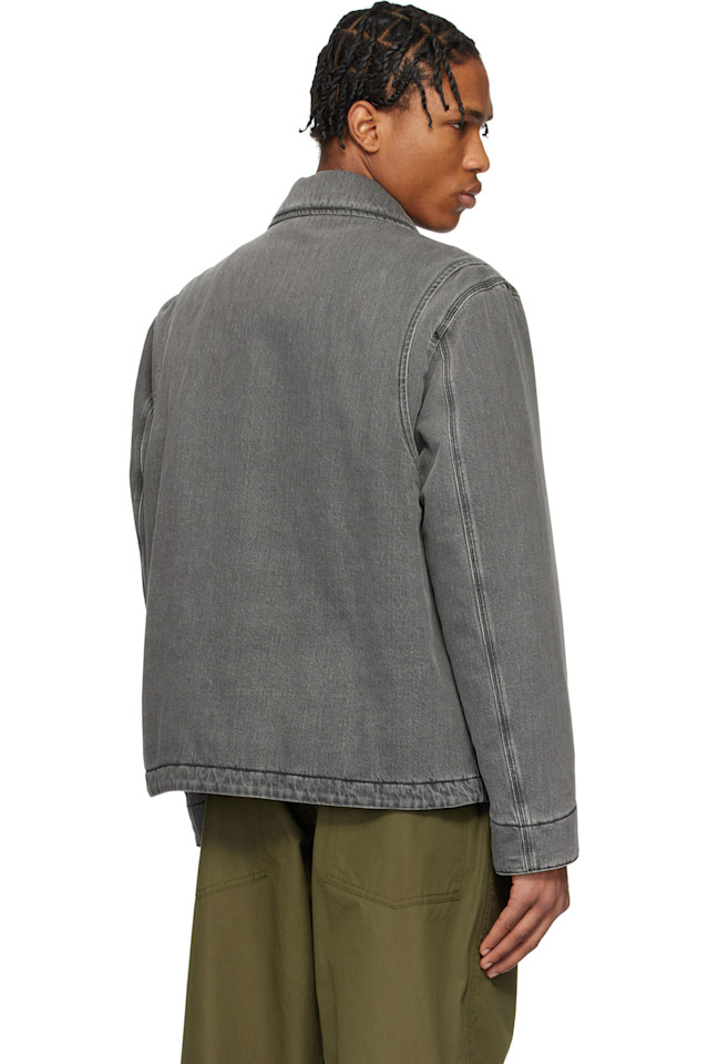 Утеплённая джинсовая куртка из неэластичного денима. Потертости по всей длине.