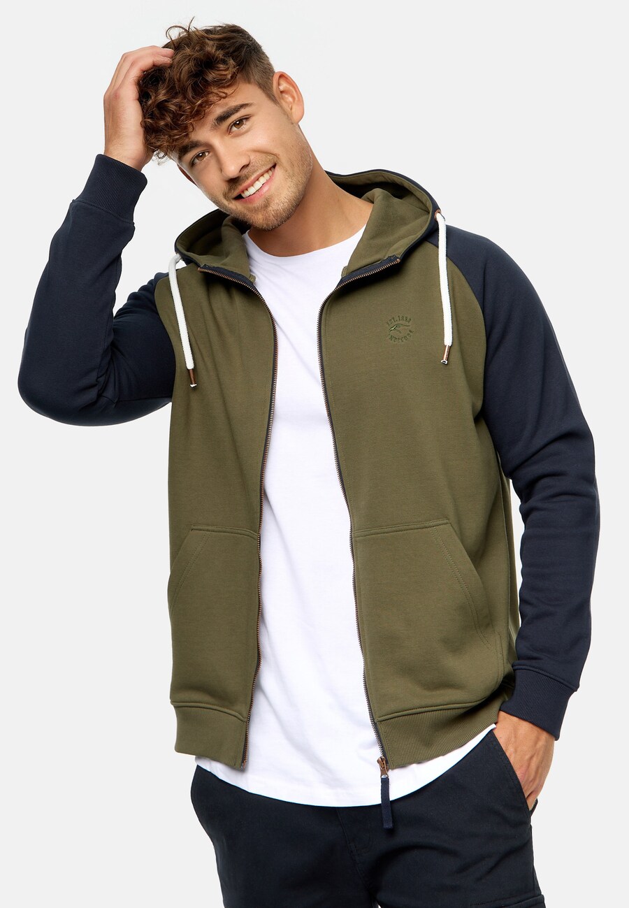 Толстовка с капюшоном на молнии INDICODE JEANS Pulko, оливковый