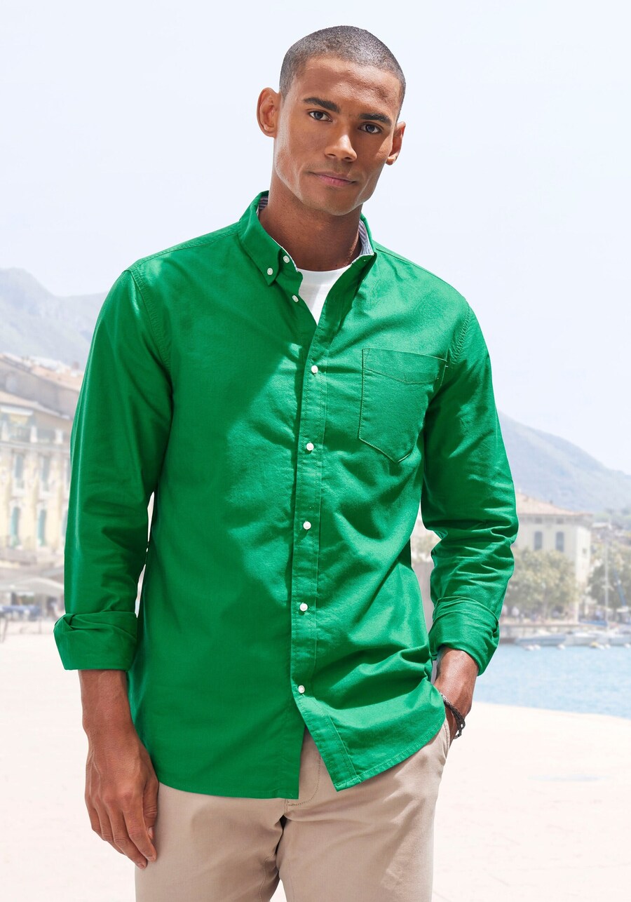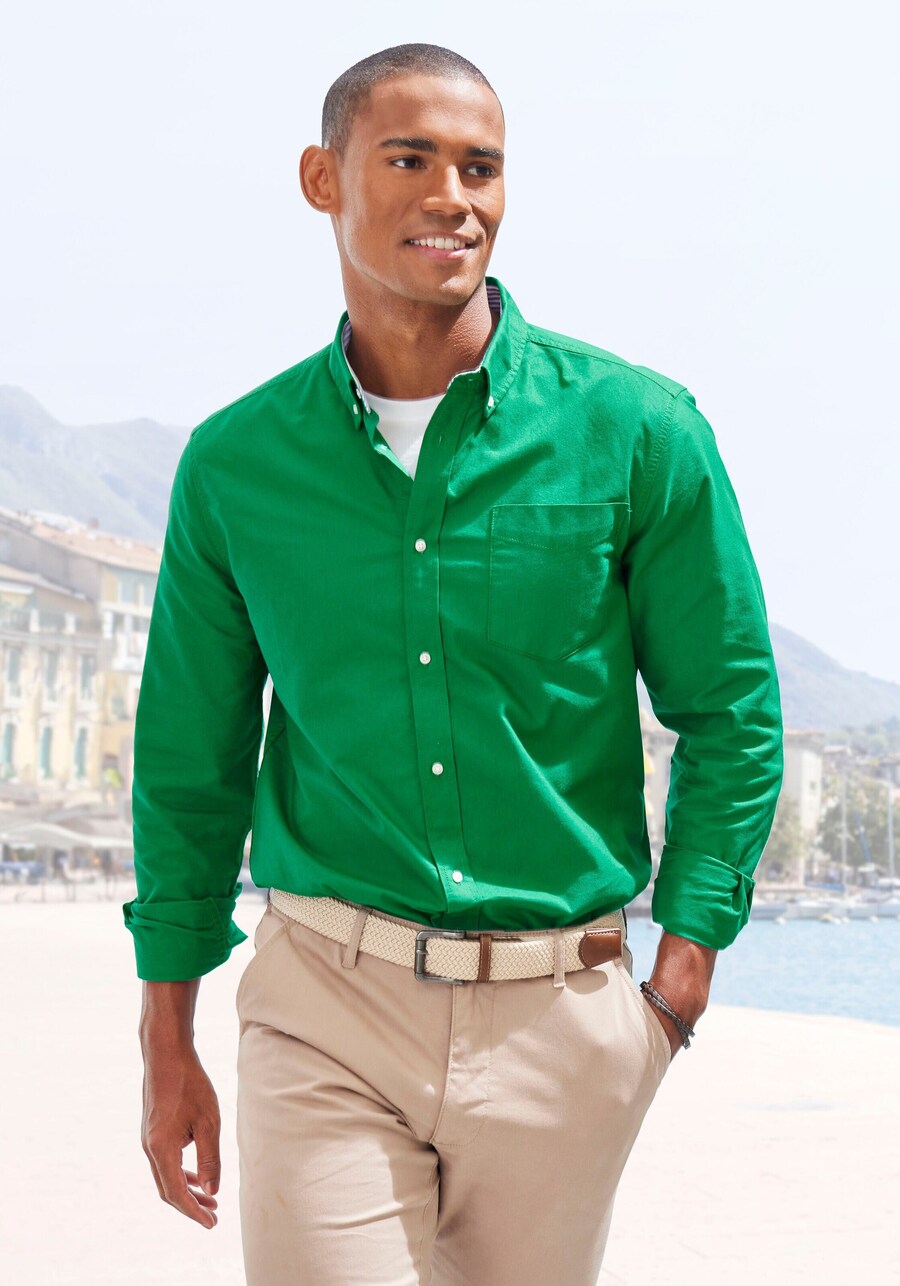Рубашка на пуговицах классического кроя H.I.S, зеленый
