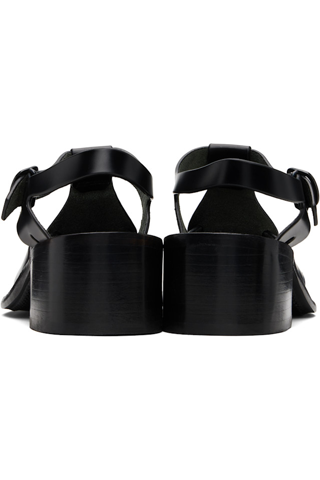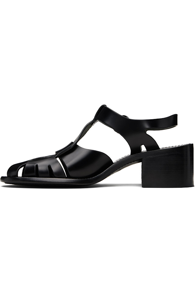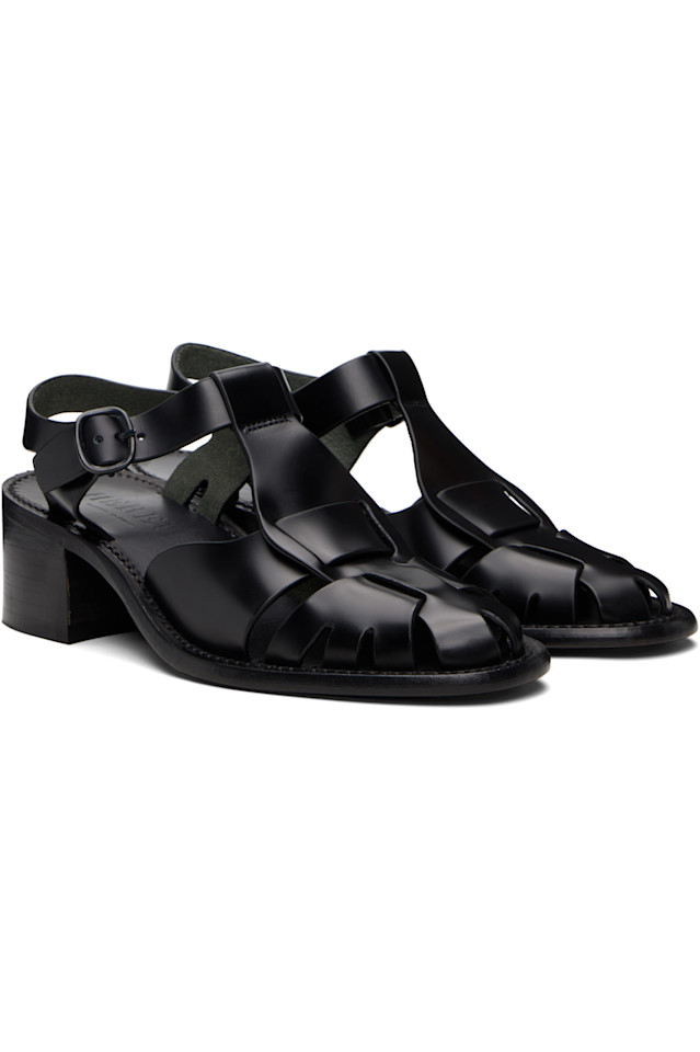 Босоножки на каблуке из полированной телячьей кожи ручной работы.