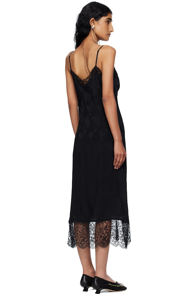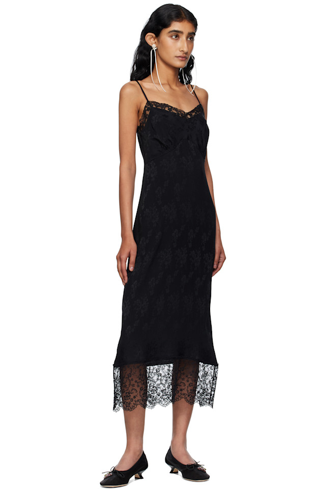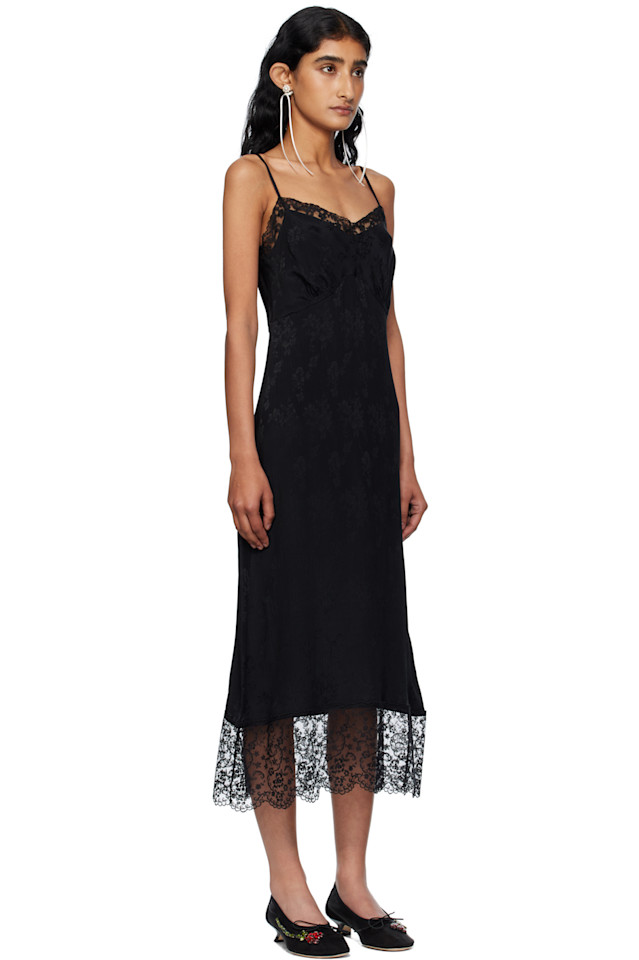 Глубокое кружевное платье-миди на бретелях Simone Rocha, черный