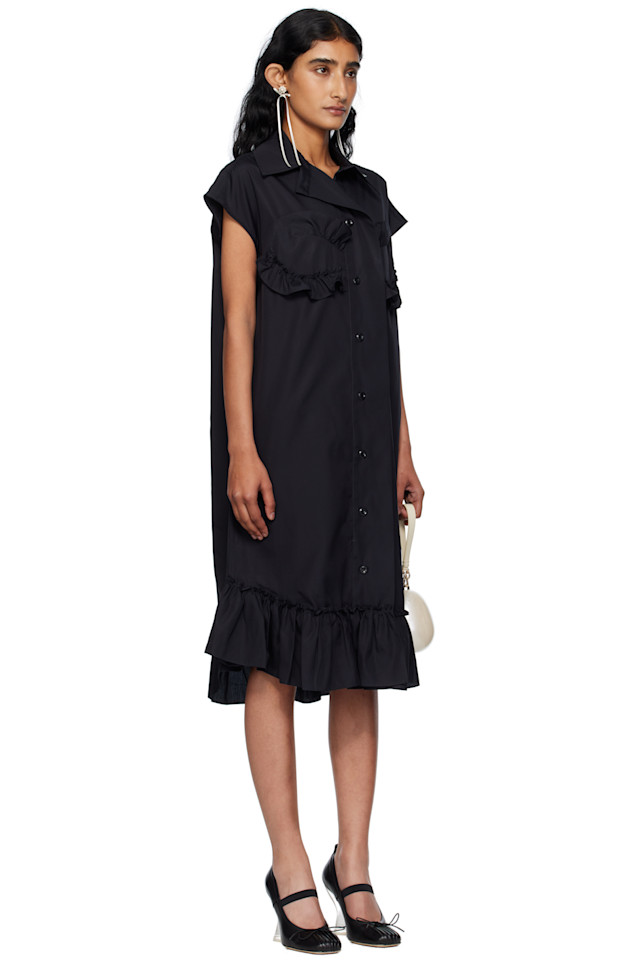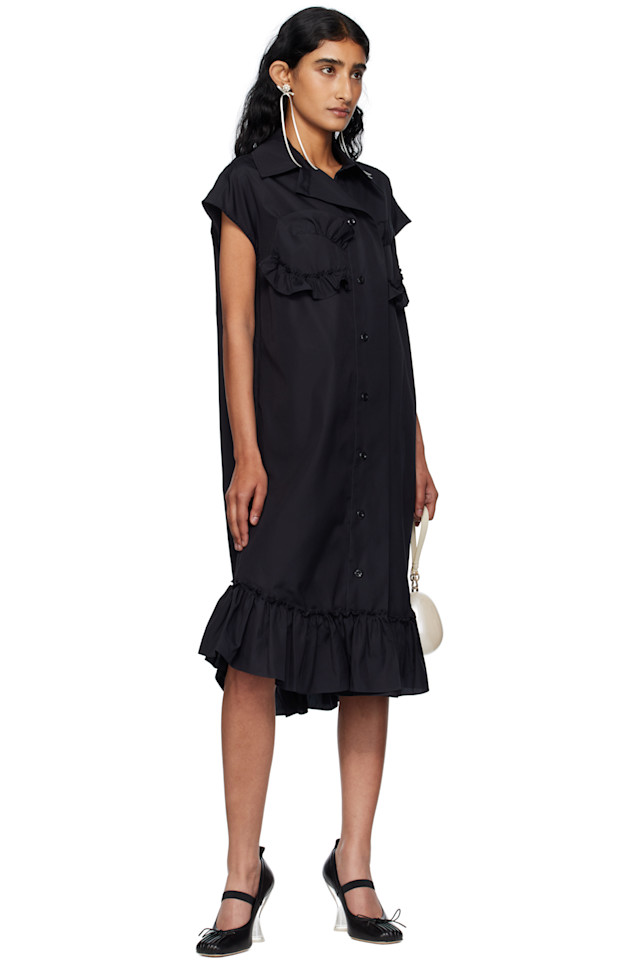 Миди-платье без рукавов с рюшами на лифе Simone Rocha, черный