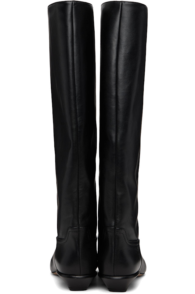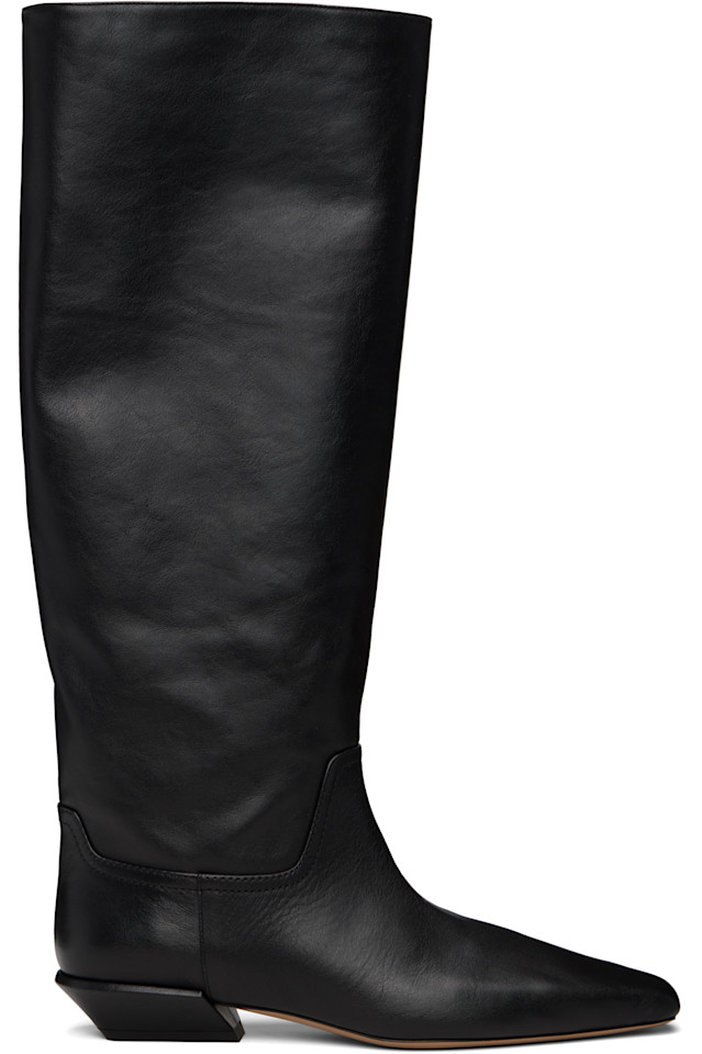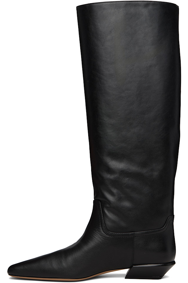 Сапоги до колена из полированной телячьей кожи.