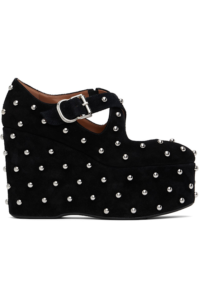 Закрытый каблук-танкетка и промежуточная подошва-платформа.