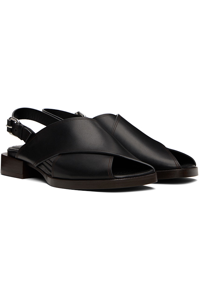 Сандалии из полированной кожи наппа растительного дубления, черного цвета.