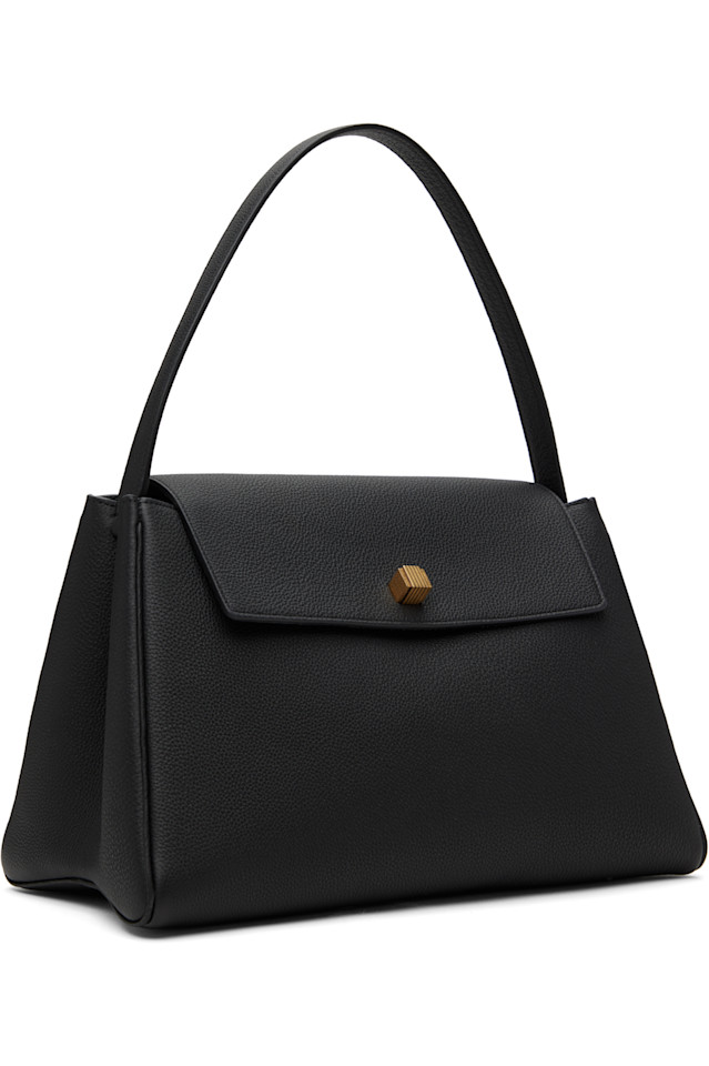 Сумка с верхней ручкой из зернистой телячьей кожи черного цвета.