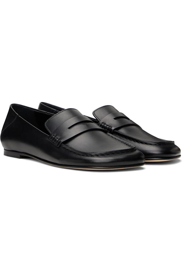 Лоферы из полированной телячьей кожи, изготовленные вручную, черного цвета.
