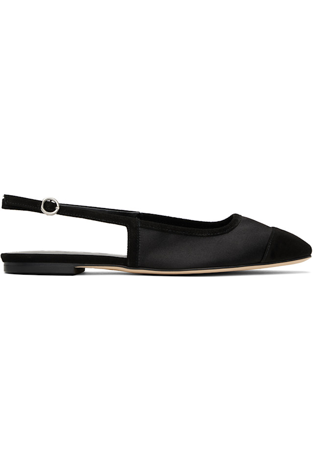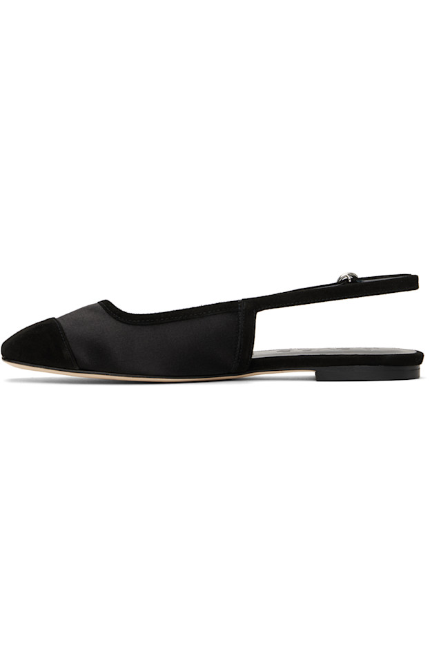 Балетки из атласа и лайковой замши черного цвета.