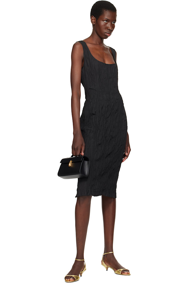 Сумка с верхней ручкой из полированной телячьей кожи черного цвета.
