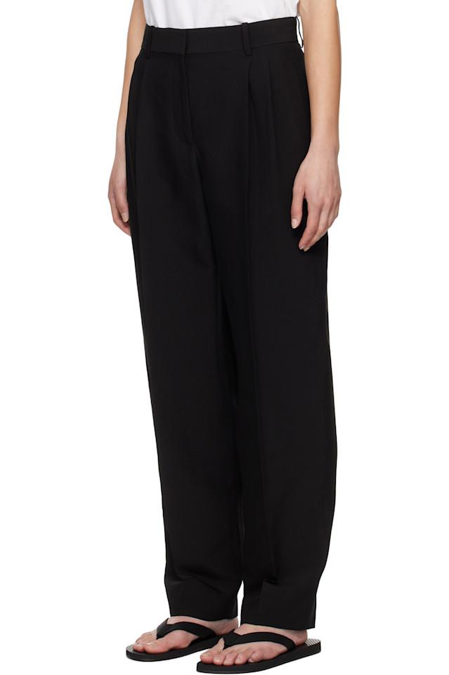 Брюки прямого кроя из саржи с добавлением шерсти и льна.