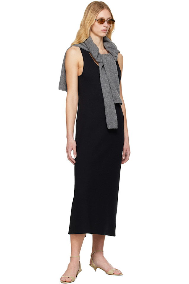 Хлопковый шелковый эластичный трикотажный миди-платье Auralee, черный 42 923₽