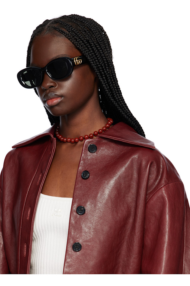 Солнцезащитные очки в овальной оправе из ацетата черного цвета.