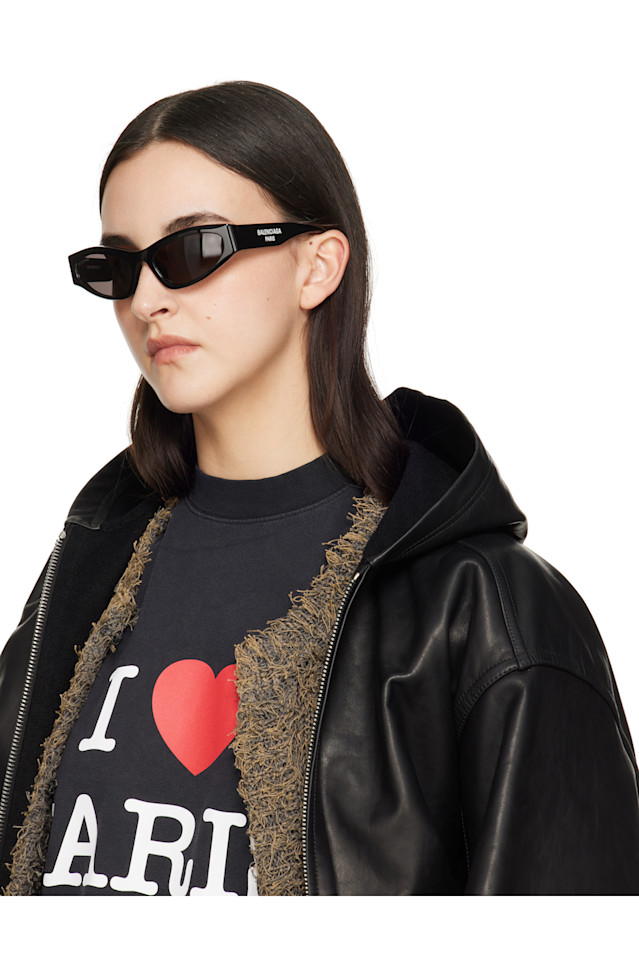Солнцезащитные очки «кошачий глаз» в оправе из ацетата черного цвета.